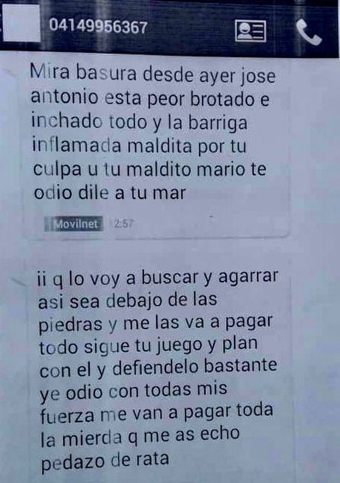 En fecha 26-03-2016 la ciudadana Adriana Ayaris Torrealba formuló su denuncia manifestando Wender Villalobos Padrón con quien tuvo una relación amorosa la acosaba por tener ella otra pareja y que a través de las redes sociales publicaba imágenes desacreditandola y enviaba mensajes de odio dirigidos a su persona, según Globovisión.