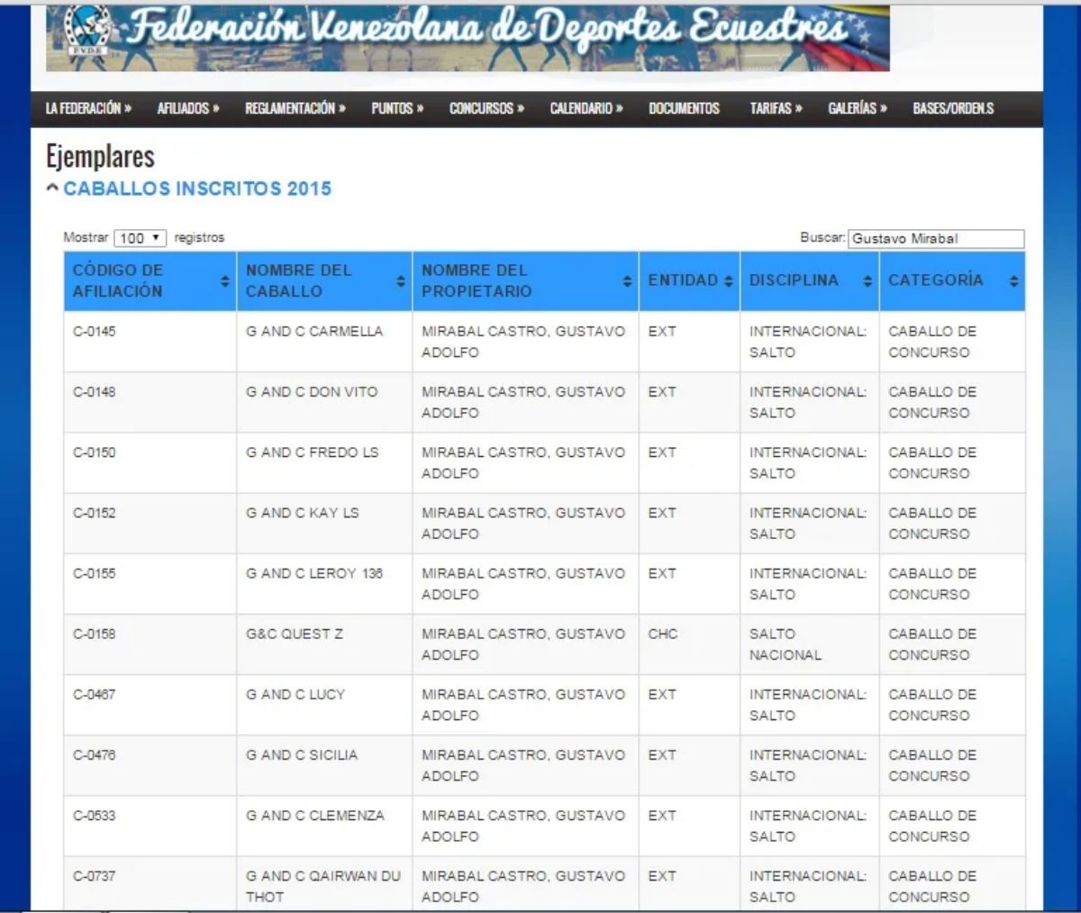 Una bandera de Venezuela se alza en el centro de entrenamiento ecuestre en Florida, Estados Unidos. El Palm Beach G&C Farm, propiedad de los esposos venezolanos Gustavo y Carolina Mirabal, tiene como visión -de acuerdo con su página web- calificar a jinetes en todos los torneos de alto nivel como las competiciones finales de la Copa del Mundo, Juegos Ecuestres Mundiales y Juegos Olímpicos. Uno de sus campeones es Emanuel Andrade, hijo del teniente y extesorero nacional venezolano Alejandro Andrade, quien cumplió condena en los Estados Unidos por recibir sobornos y por blanqueo de dinero, según un reporte de expresa.se.