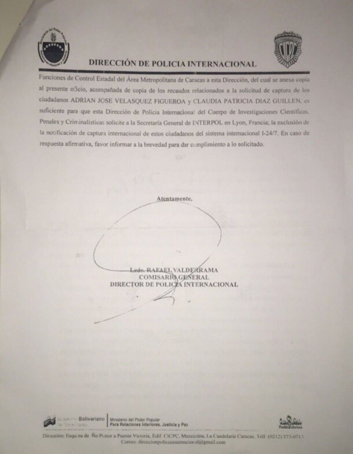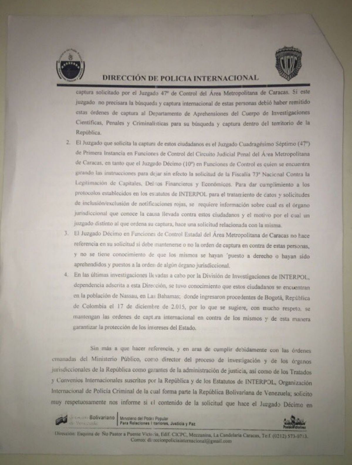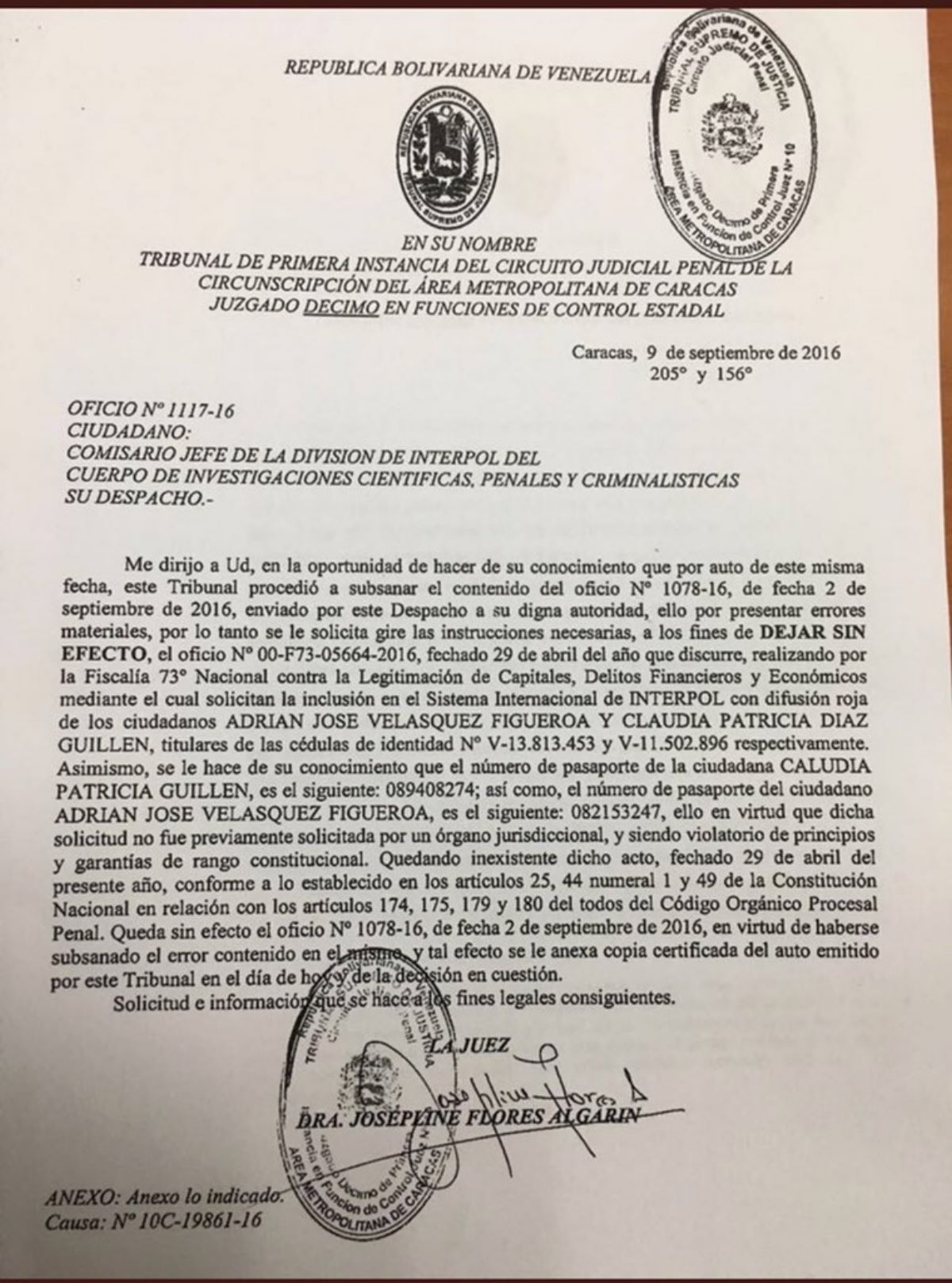 Gorrín y Perdomo lograron que un tribunal distinto al que había decretado las privativas de libertad en su contra en Venezuela, emitiera un oficio dejando sin efecto la orden a Interpol Venezuela, para que hiciera el trámite correspondiente ante Interpol-Francia.
