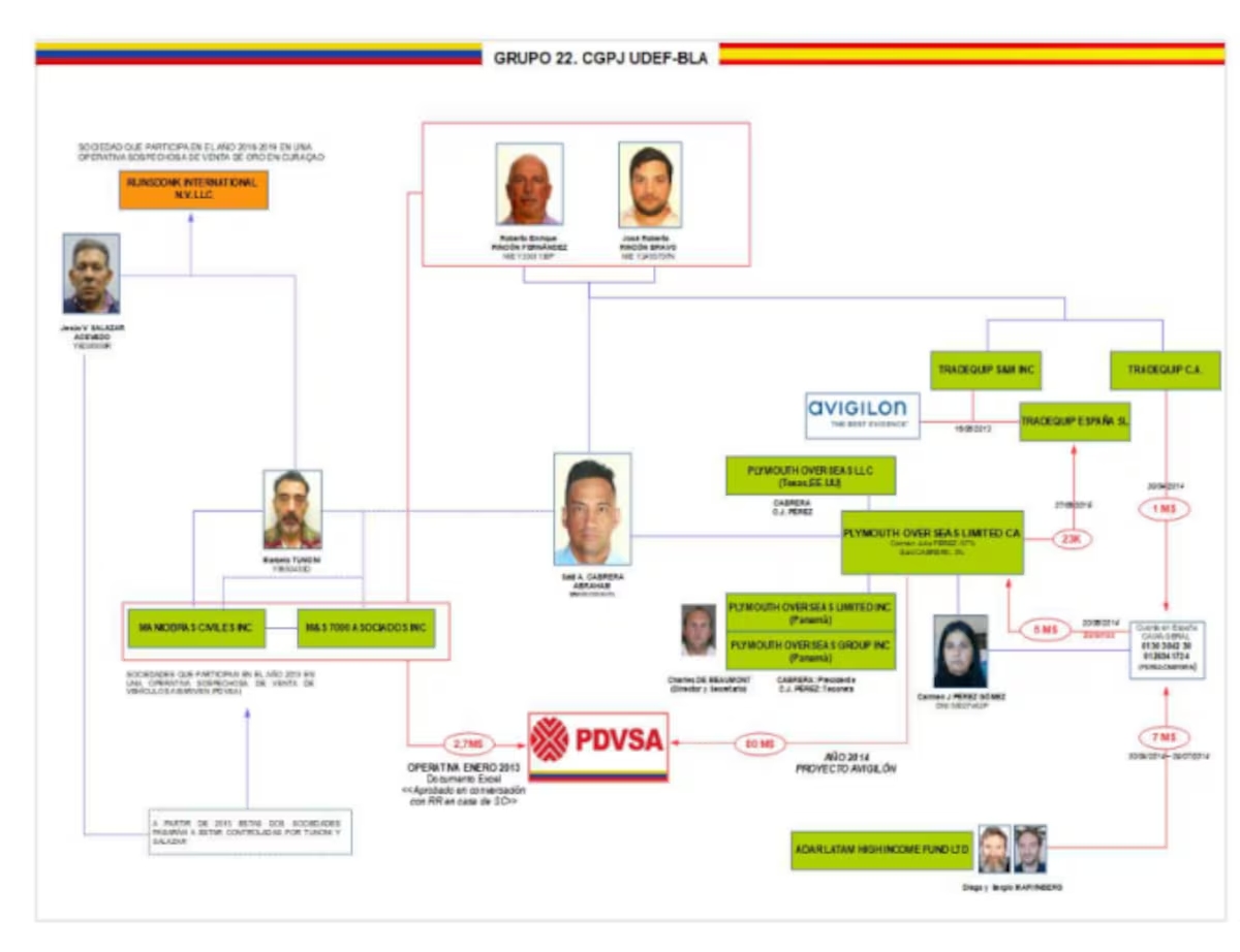 Esta operación hizo saltar las alarmas de las autoridades por varios motivos. Primero, porque PDVSA entregó a Plymouth Overseas (la sociedad creada por Cabrera y Carmen Julia Pérez) el contrato a pesar de que dicha sociedad se había creado pocos meses antes y no tenía ningún recorrido profesional; segundo, porque aunque Said Cabrera aparecía como socio accionista minoritario, en todas las conversaciones intervenidas él era el interlocutor principal; tercero, porque el dinero se transfirió a una cuenta a nombre de Carmen Julia en la que el exmilitar venezolano tenía autorizado su acceso; y cuarto porque se inició entonces un trasiego de dinero a distintas filiales de la sociedad que fueron “constituidas ad hoc en las fechas de consecución de la operativa”.
