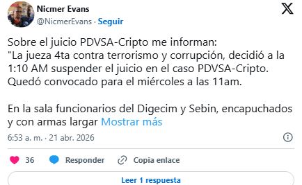 Valencia, 21 de abril de 2026-. Juicio contra Tareck El Aissami se retomará el miércoles tras ser suspendido en la madrugada de este martes. Juicio PDVSA-Cripto fue diferido luego de que los acusados se presentaran ante el tribunal correspondiente. Entre los imputados se encuentran Tareck El Aissami, Hugbel Roa y Samark López.